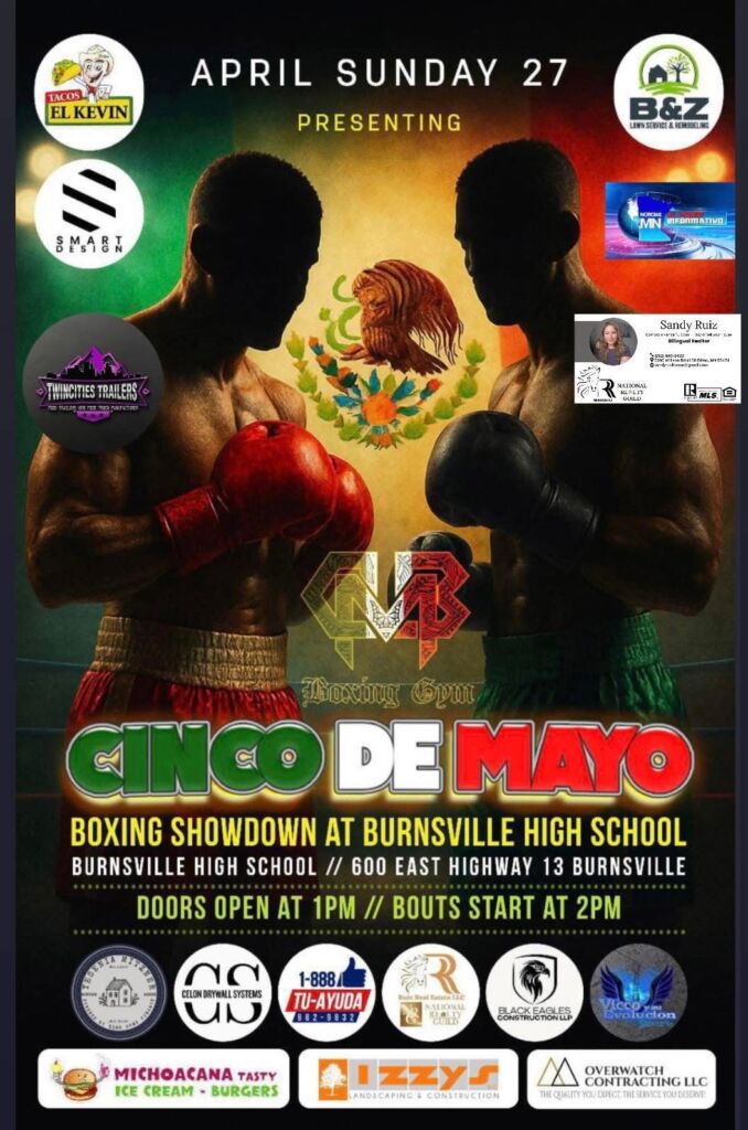 The action continues Sunday, April 27, with CMB Gym hosting the “Cinco de Mayo Boxing Showdown” at Burnsville High School, 600 E Highway 13, Burnsville, MN. Doors open at 1 PM and the first bout is scheduled for 2 PM. Tickets will be available at the door withanother great chance to catch some of Minnesota’s amateur boxers.