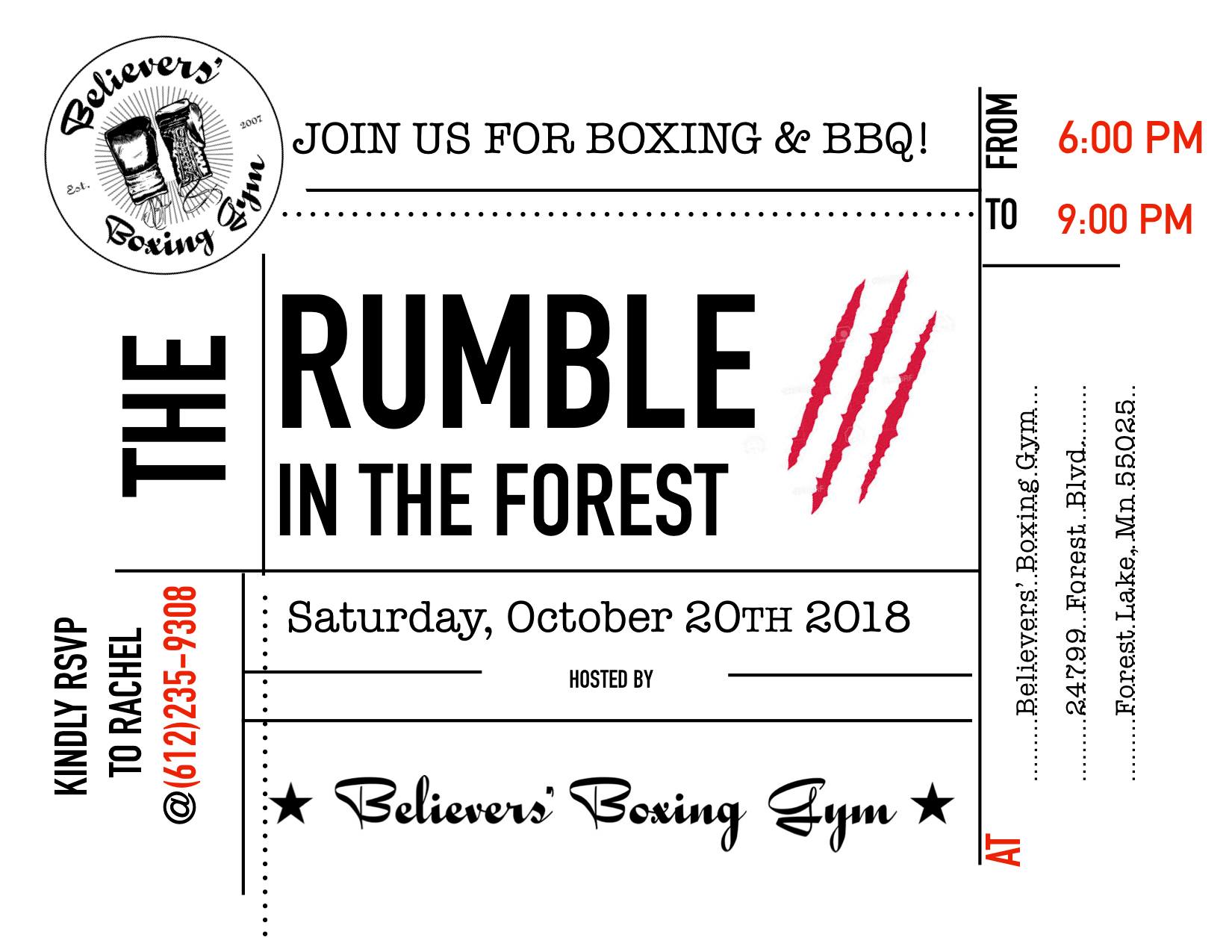 Two hours south, Believers Boxing Gym in Forest Lake hosts “Rumble in the Forest 3”. The action also kicks off at 7 PM with doors opening at 6 PM. There will be raffles and BBQ to go along with the live entertainment. To view more info on the event CLICK HERE.