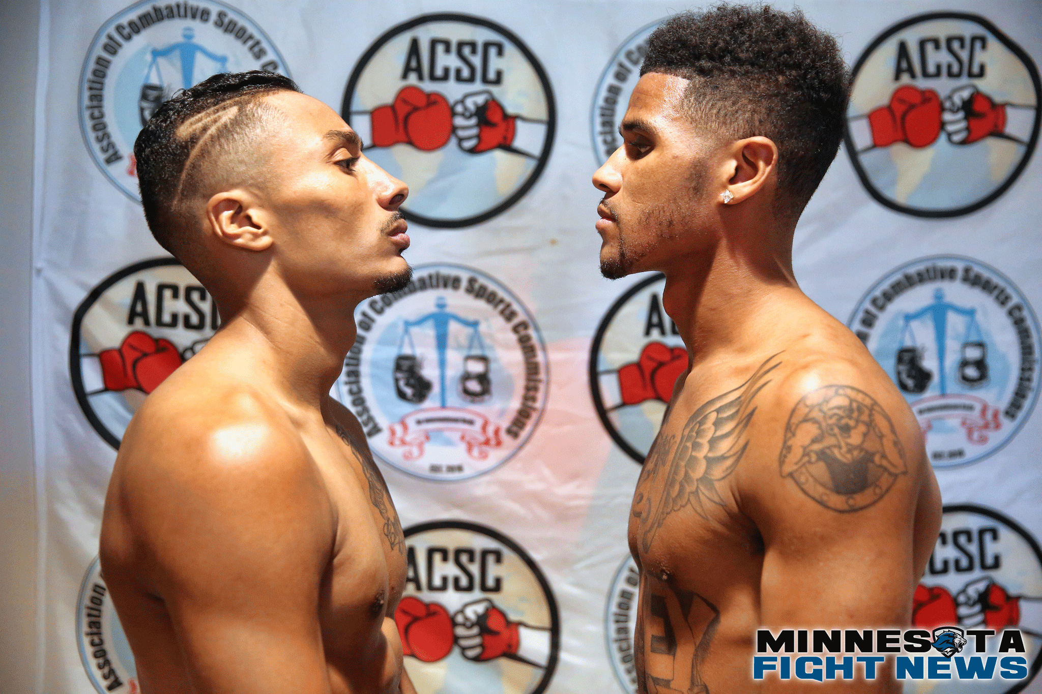 Weigh-ins went quickly and smooth earlier tonight at the Grand Casino in Hinckley, MN. Both Rondale Hubbert of Minneapolis and Markus Morris of Duluth made the super lightweight limit. They will battle for the vacant Minnesota State super lightweight title tomorrow night. Hubbert weighed in first, coming in one pound under at 139 pounds. Morris hit the mark on the button at 140 pounds. Both looked calm and focussed.