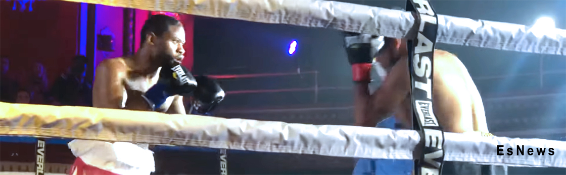 Giezwa Hobbs warming up before his fight with former gold medalist Henry Tillman. (Credit Es News)