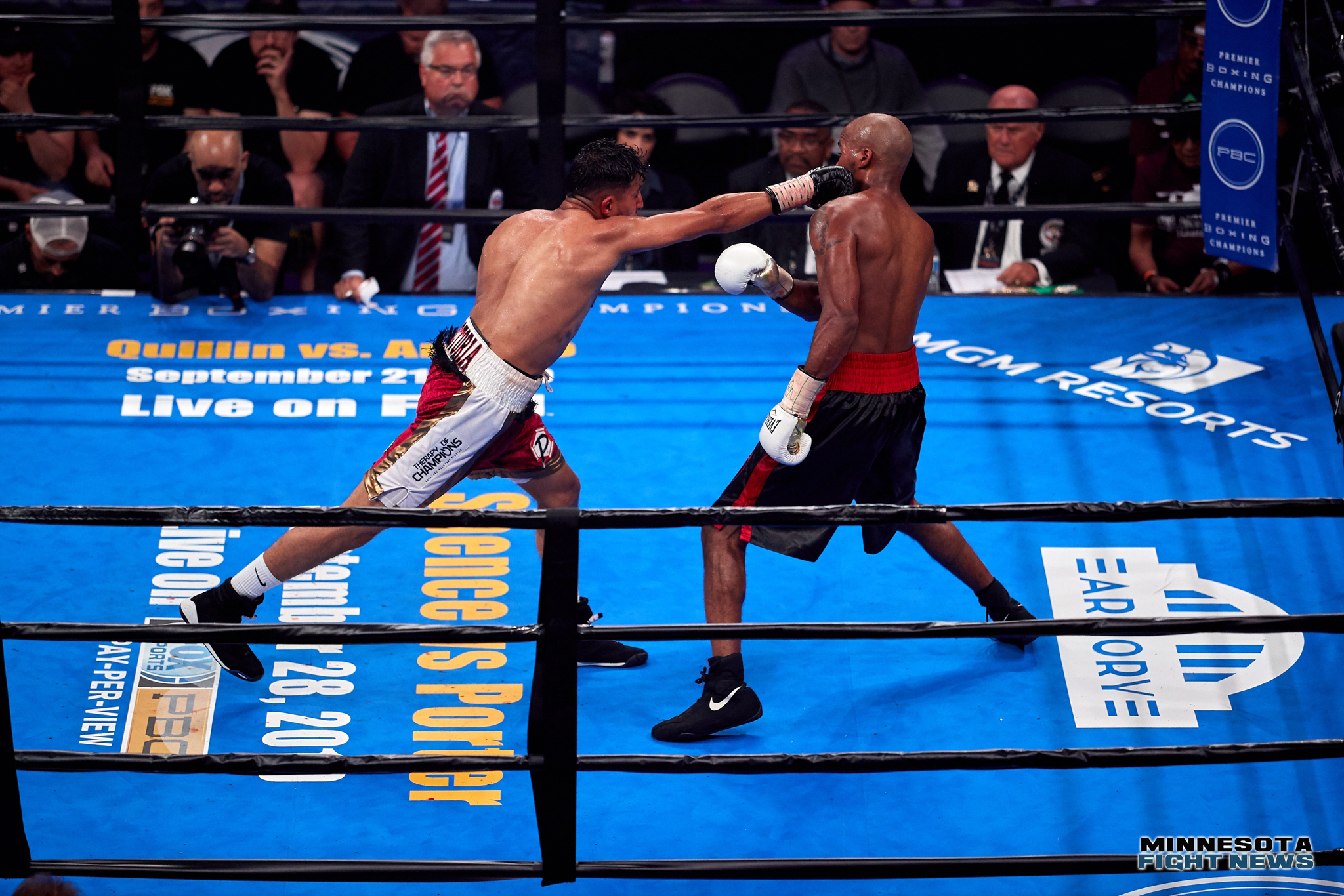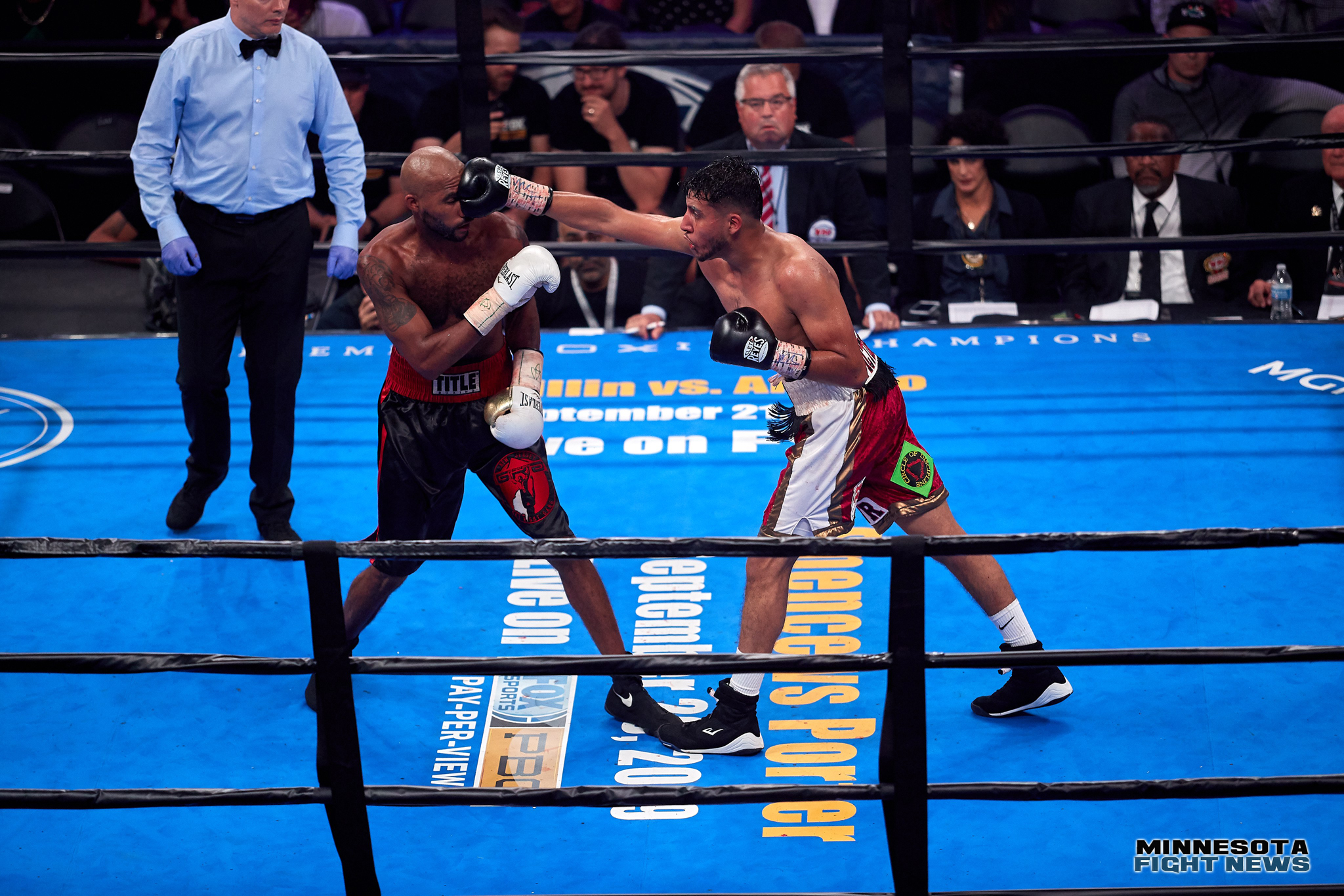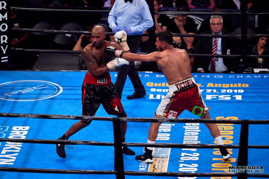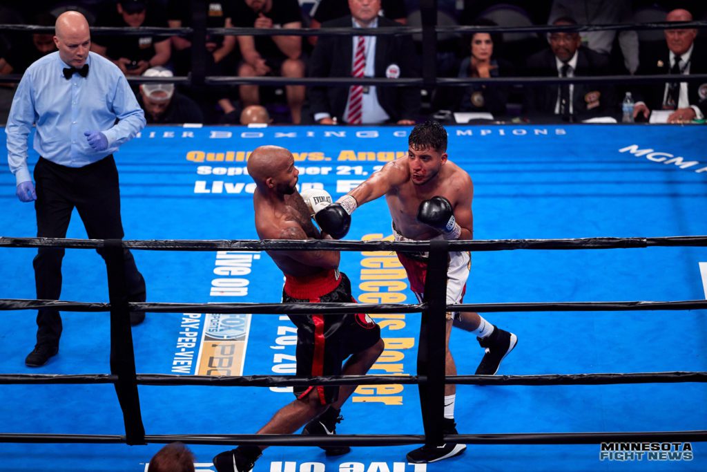 Minneapolis welterweight Celso Ramirez (now 7-1-1, 7 KO’s) and Tyrone Luckey (now 9-10-4, 7 KO’s) of Neptune, New Jersey fought to a six round majority draw tonight at the Armory in Minneapolis. Fans booed the decision and felt Tyrone was “lucky” to even up the score on the cards. Ramirez seemed to land the more damaging shots. Luckey was busier at times and got rolling more as the fight went on.