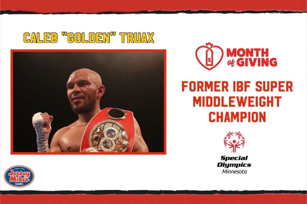 “Golden” Caleb Truax, former IBF World Middleweight champion of Osseo, MN will be become a sandwich artist at Jersey Mike’s Subs in Edina, MN beginning at 10:30 AM on Wednesday, March 27, 2024. Truax is donating his time to help raise funds for the Special Olympics where all proceeds will go to.