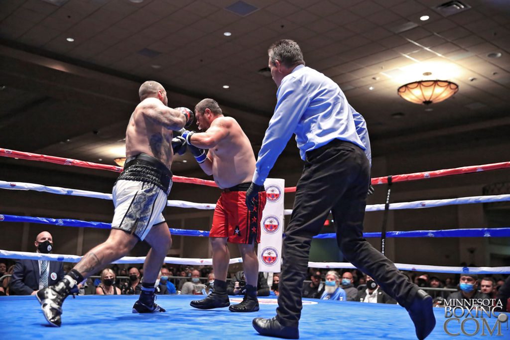 Fans packed the Grand Casino in Hinckley, MN on Friday, October 25, 2021 to see pro boxing’s big return to the venue. There were plenty of memorable moments throughout the night but it was Tim Taggart Jr.’s spectacular second round knockout over talented James Dancing Bull Jackson that stole the show. Taggart may have been returning from a 10 year ring absence but showed no signs of rust. In fact, Taggart looked stronger after moving to heavyweight with all the speed from his middleweight years still present.