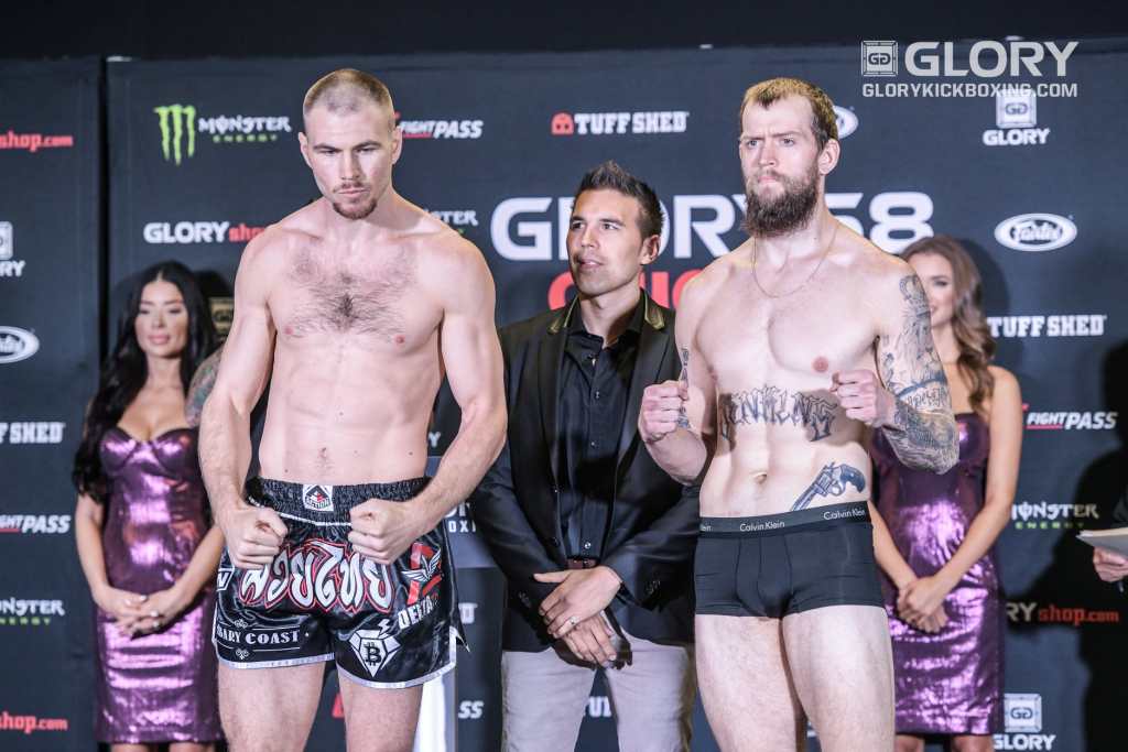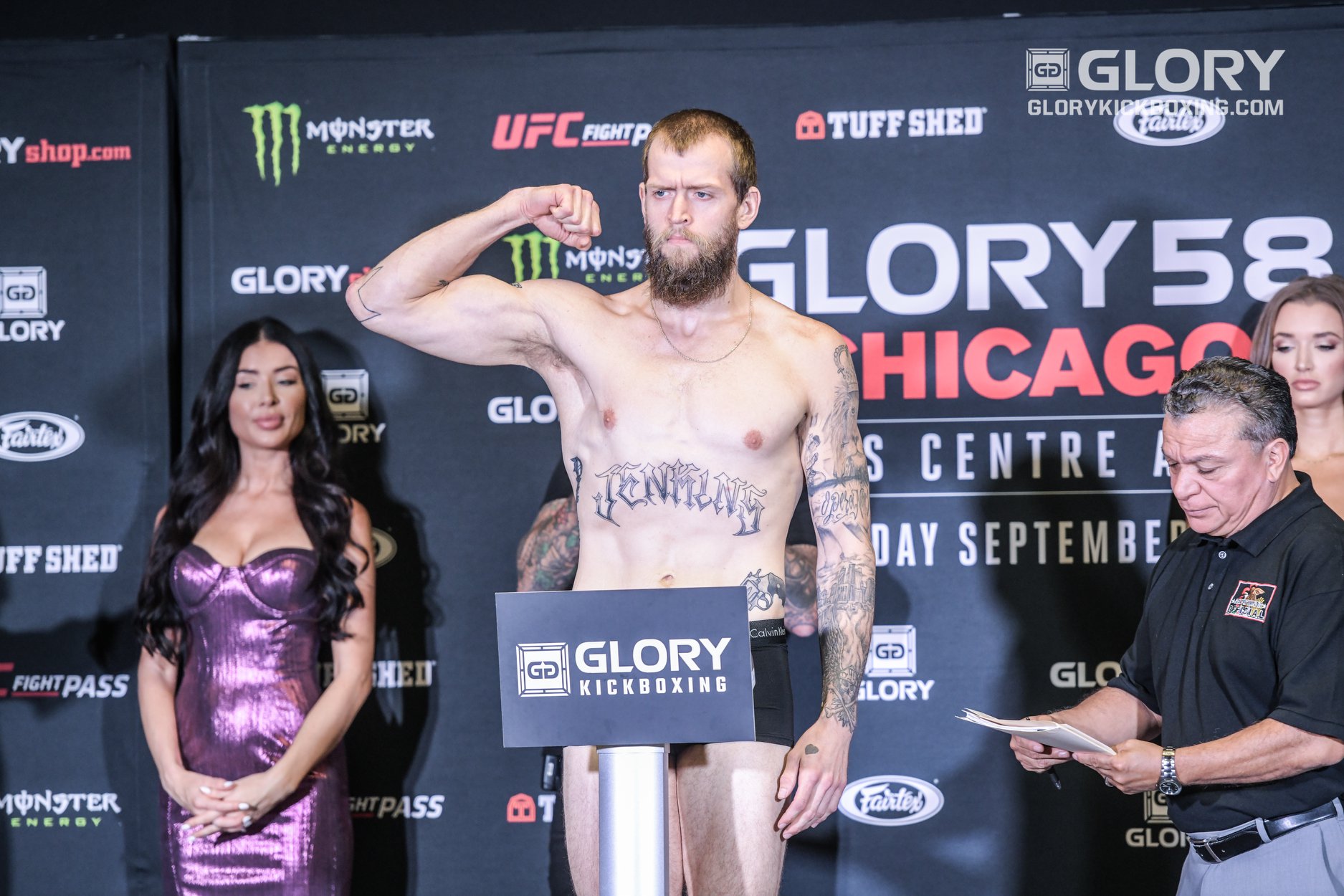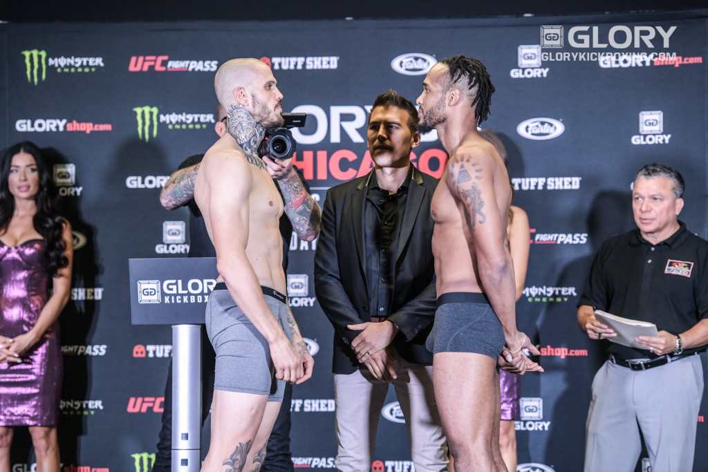 Three-time North American Thai Boxing Champion Thomas Jenkins (3-1, 3 KO’s) of Hopkins, MN is set to make his Glory debut. Jenkins weighed in at 184.5 for his middleweight match against Matt Baker. Baker was two pounds heavier at 186.5