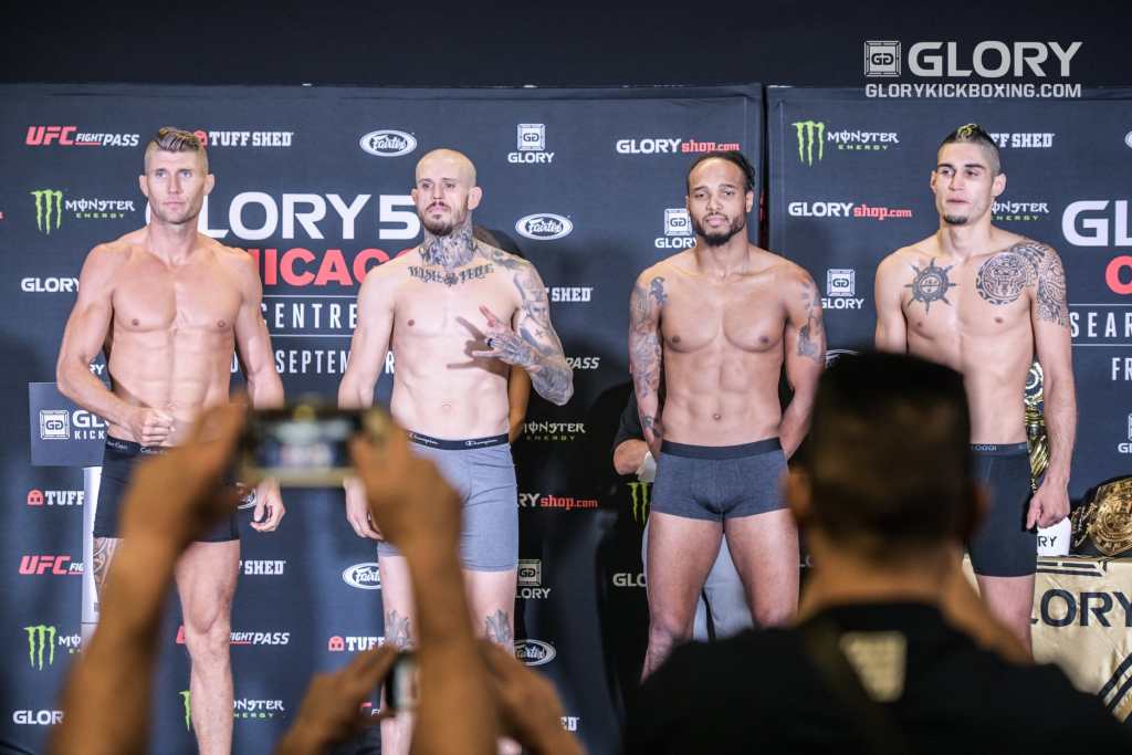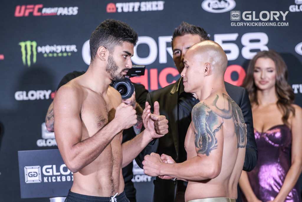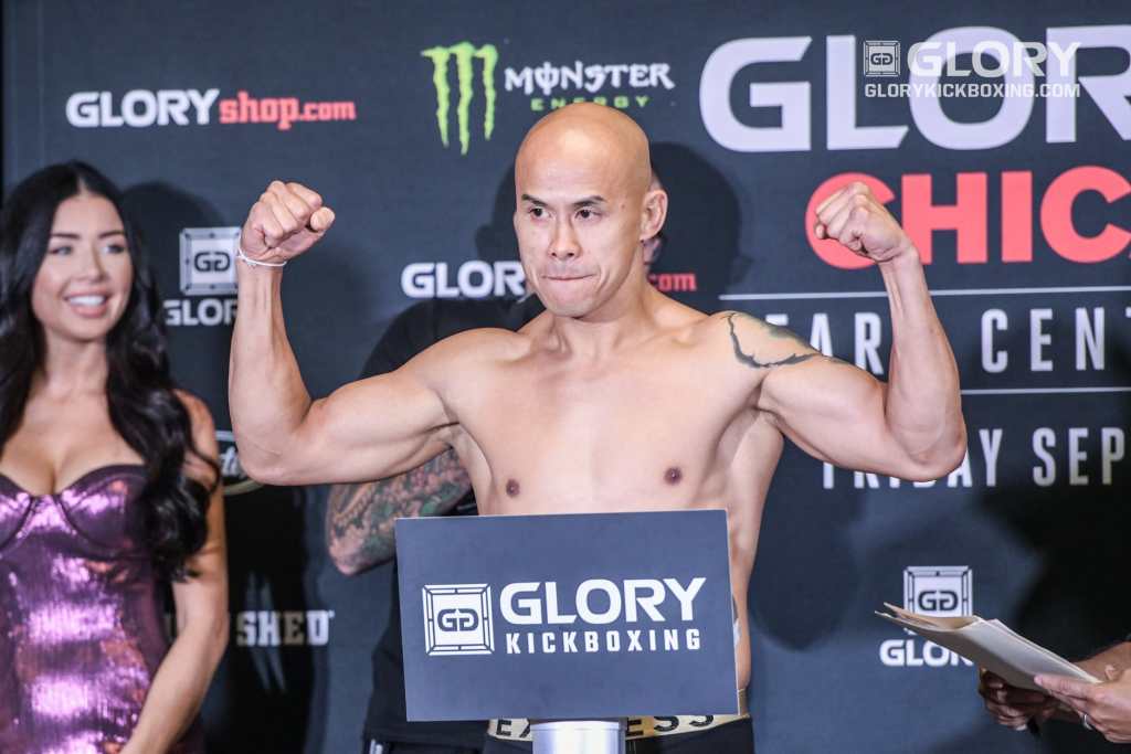 Minnesota’s Kou “The Sexy Asian Invasion” Lee (2-0, 2 KO’s) weighed in for his featherweight match at 141.5. His opponent, Houssam El Kasri (1-1, 1 KO) of Morocco weighed-in t 142 pounds. Lee versus Kasri can be seen live on Glory’s Youtube page here along with the rest of the preliminary bouts. The prelims begin at 5 PM Central Time.