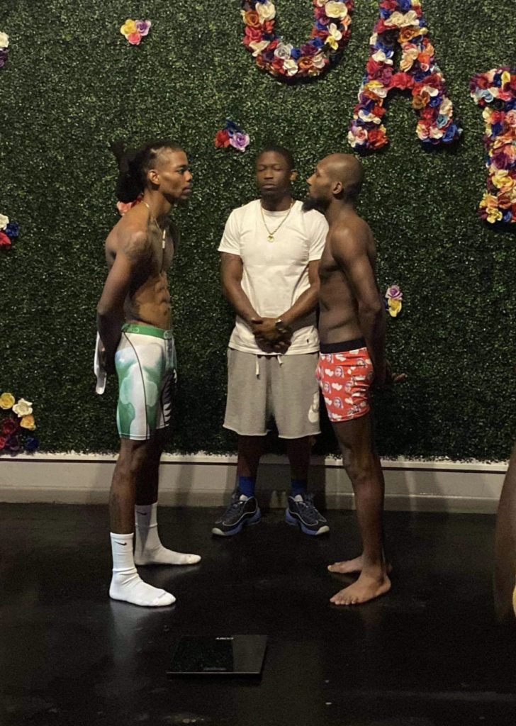 Rondale Hubbert 137.2 (right) vs Fernando Bunch 135. Hubbert said Georgia allows for two pounds give or take. He wanted to come in strong and said the fight is on. Stay tuned for more info on tomorrow’s Stream. Photo credit Brianna Koplin