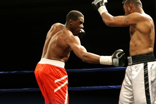 Fred Moore jabbed and boxed from the outside using his height well. However, Daniels was able to work his way inside more frequently as the fight progressed, landing uppercuts and left hooks to the head of Moore.